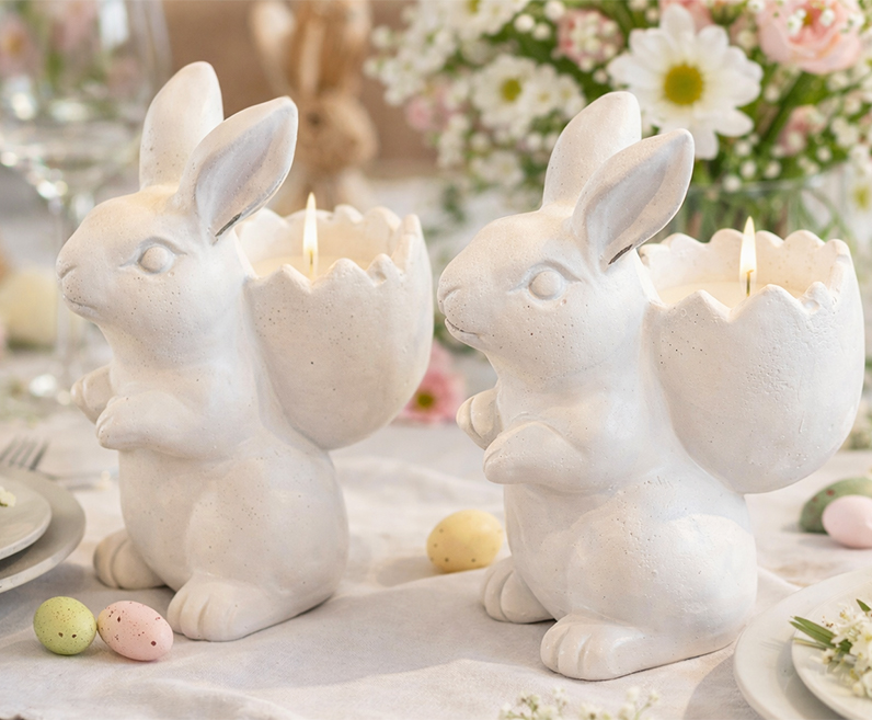 Das sanfte Kerzenlicht schafft eine warme, gemütliche Atmosphäre und lädt zum Entspannen und Genießen ein. Nach der Osterzeit können die Hasen später weiterverwendet werden und werden so zu dekorativen Pflanzgefäßen für Blumen, Kräuter oder kleine Sukkulenten, die jedem starken Windstoß trotzen.